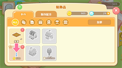 手作装饰品不需消耗制作配方,但需要消耗金币。