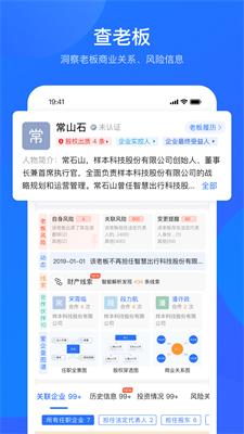 爱企查app最新版本是一款企业信息免费查询软件,软件依托百度先进的AI和大数据技术,可以帮助用户快速了解企业状况,降低因信息壁垒带来的潜在风险,提升办公效率。在这里可以查询到全国各地企业的详细信息,列如该企业的法人、股东、高管、图谱、品牌项目、发源地、创建时间、所属行业、官方网址、目前所在地等各种方面的资讯应有尽有。同时,软件还通过对企业监管、经营行为、市场反馈、关系网络等全面及时的专业解读,消除信息鸿沟,提升商业安全,让你对企业风险即时掌握,轻松了解实时企业信息。