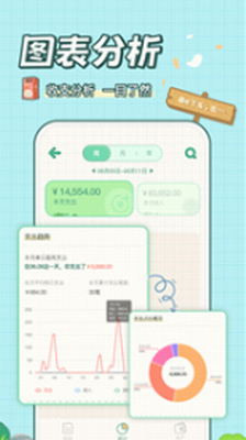 3、全面的财务分析:详尽的财务统计和图表展示,帮助用户深入了解自己的消费习惯和财务状况,做出合理的财务决策。