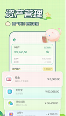 1、美观可爱的界面设计:以小清新可爱的画风设计为特色,让用户在愉快的氛围中进行财务管理,增加使用的乐趣。