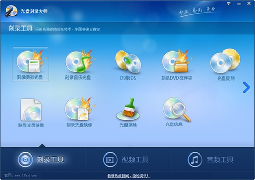 光盘刻录大师最新版本免费是一款专业且多功能的数字刻录软件,功能非常强大,界面清爽适合新手用户操作,通过备份文件资料到CD/DVD光盘中,并且把这些数据制作成映像文件,还可以创建可引导标准数据的CD/DVD光盘,以备CD/DVD设备直接引导个人电脑的启动。同时,软件能够帮助用户刻录数据光盘,音乐光盘,光盘复制,光盘擦除,视频分割,视频合并,dvd视频提取,音乐分割,音乐合并,音乐格式转换,iphone铃声制作等25项功能,还包含了基本的音视频处理功能,并支持所有的主流格式。