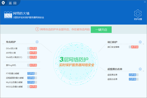 强有力的网络防护,实时监测ip和端口访问的合法性,实时拦截arp攻击、web攻击(抗cc)、ddos攻击、暴力破解。